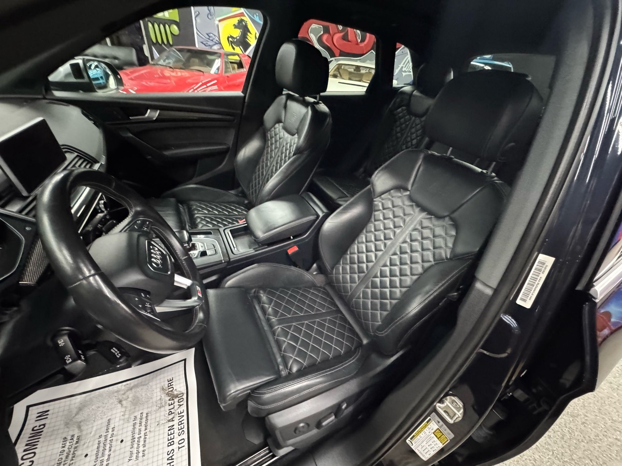 Front seatback upholstery: Plastic front seatback upholstery