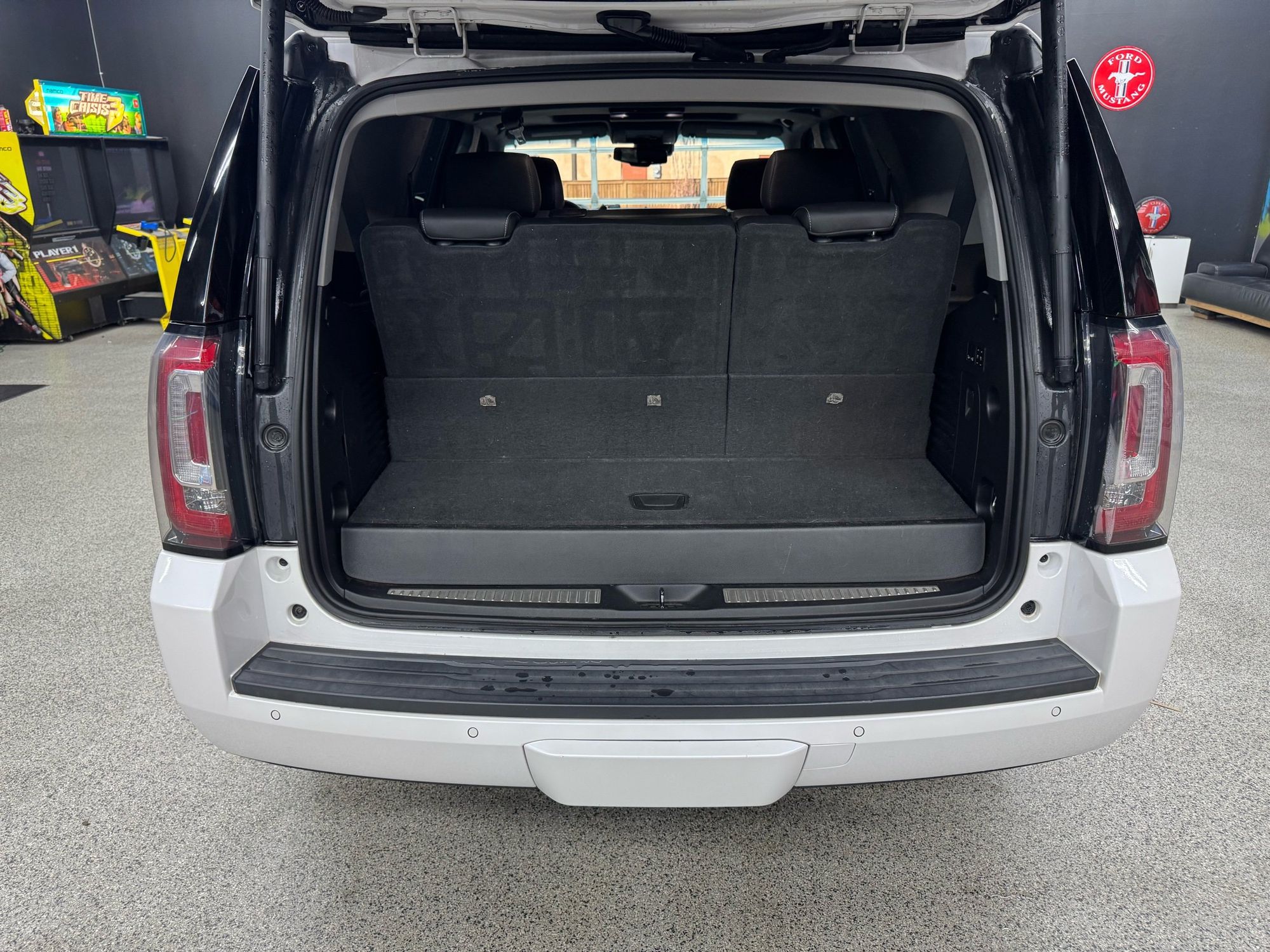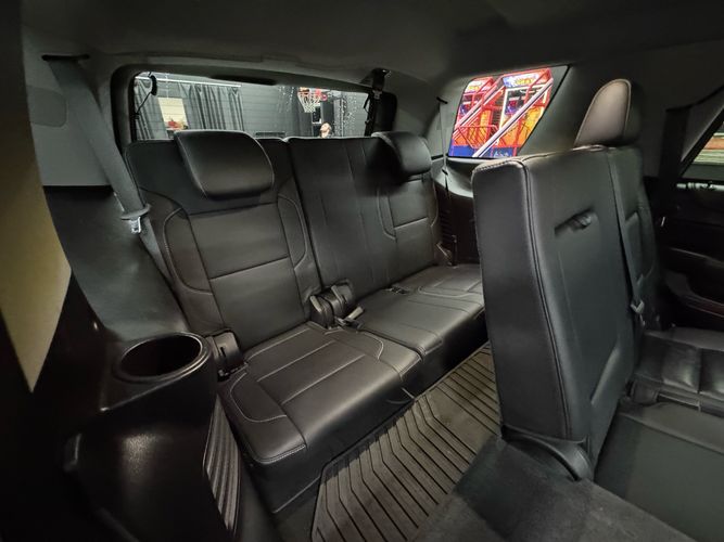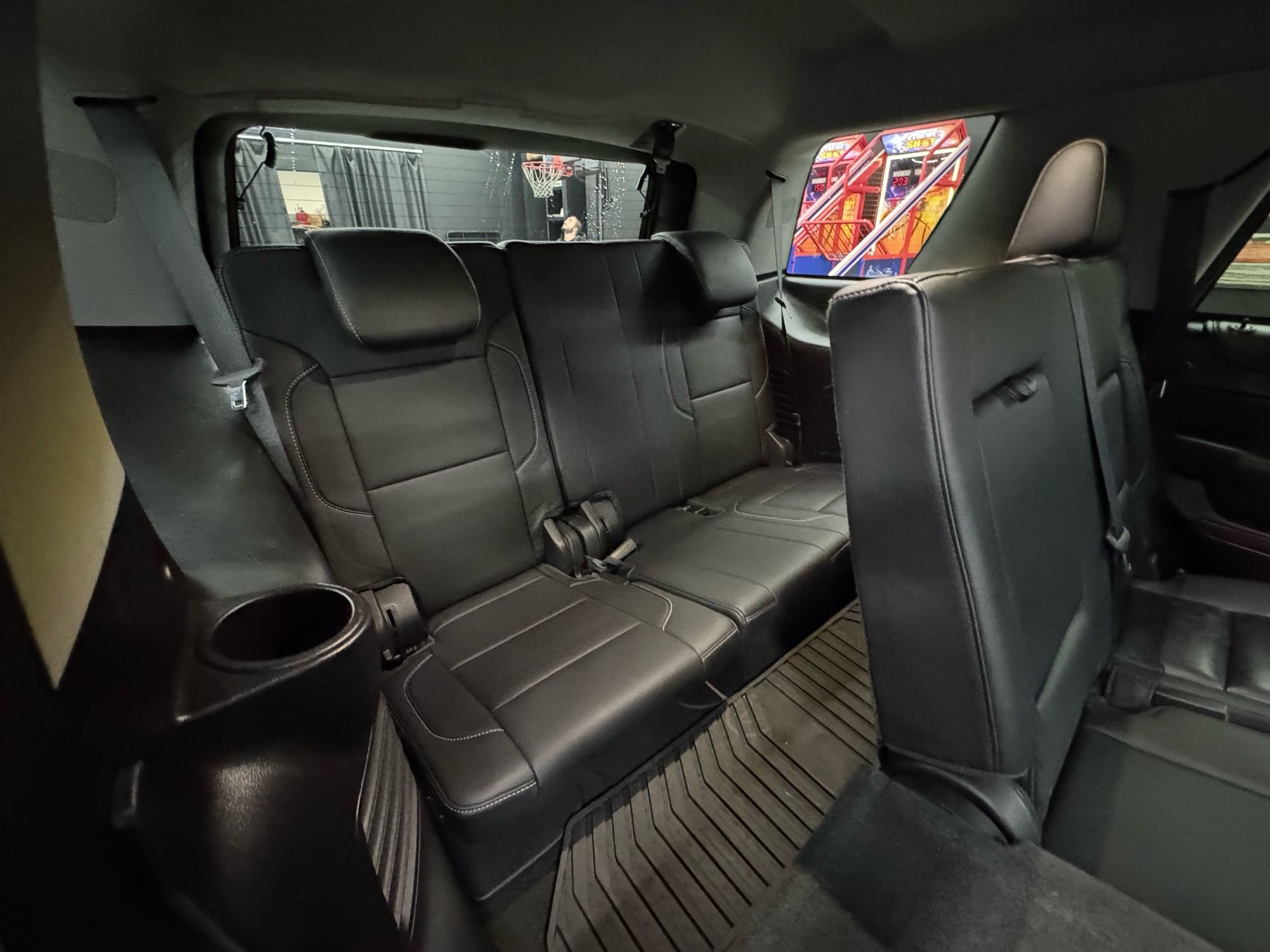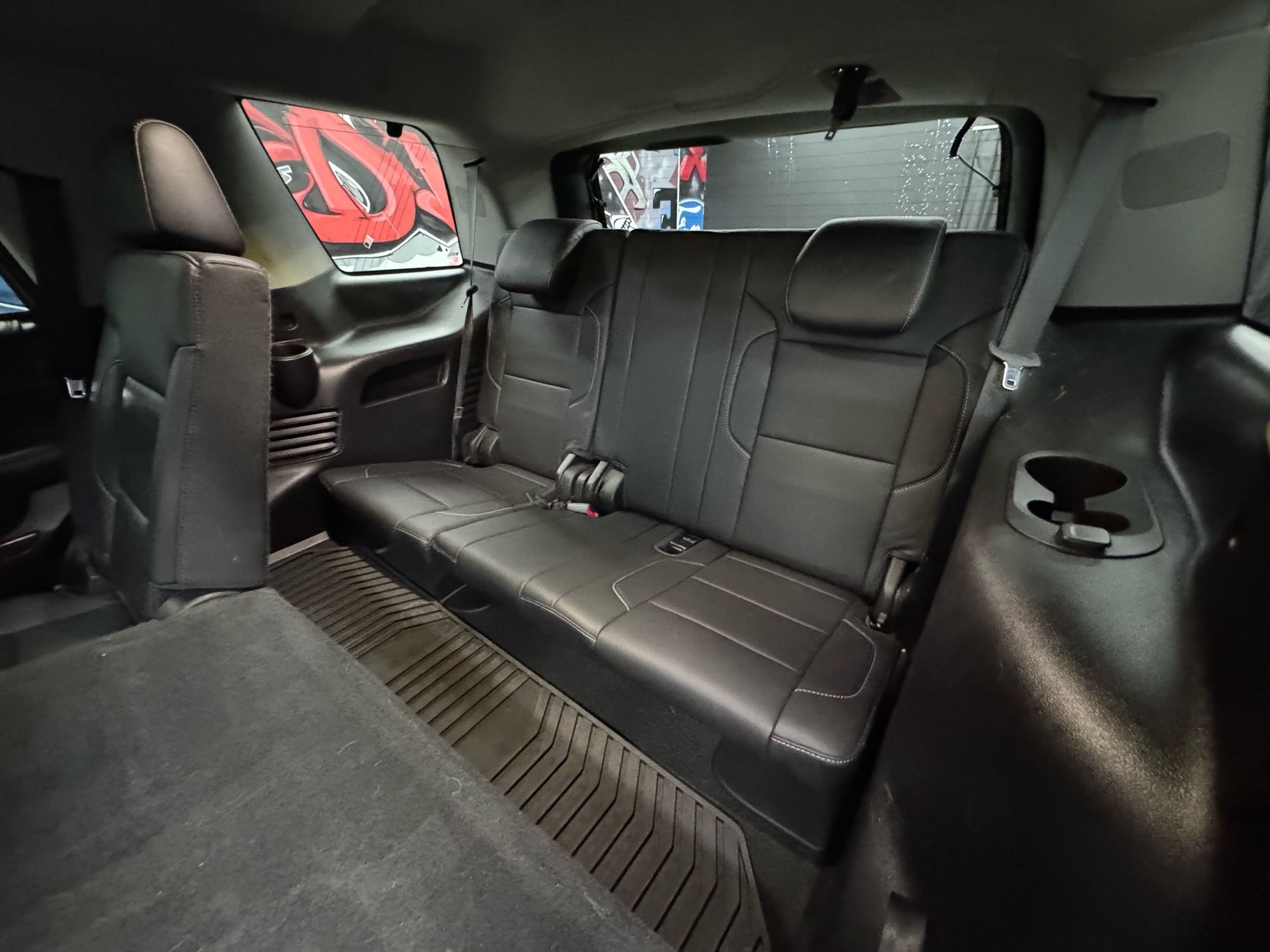 Third-row seatback upholstery: Carpet third-row seatback upholstery